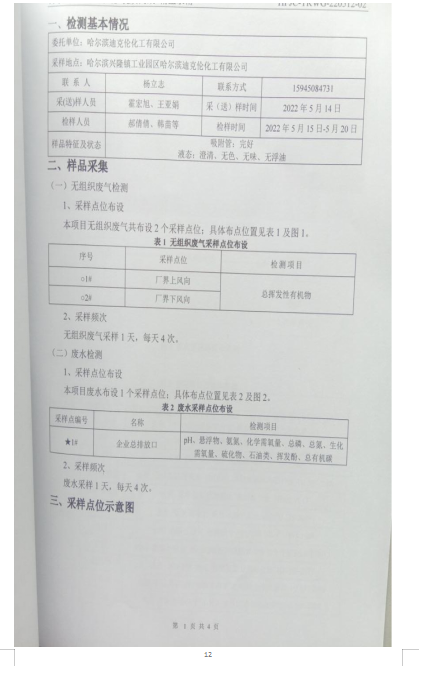 哈爾濱迪克倫化工有限公司2022年Q2季度環(huán)境白皮書信息公開報告