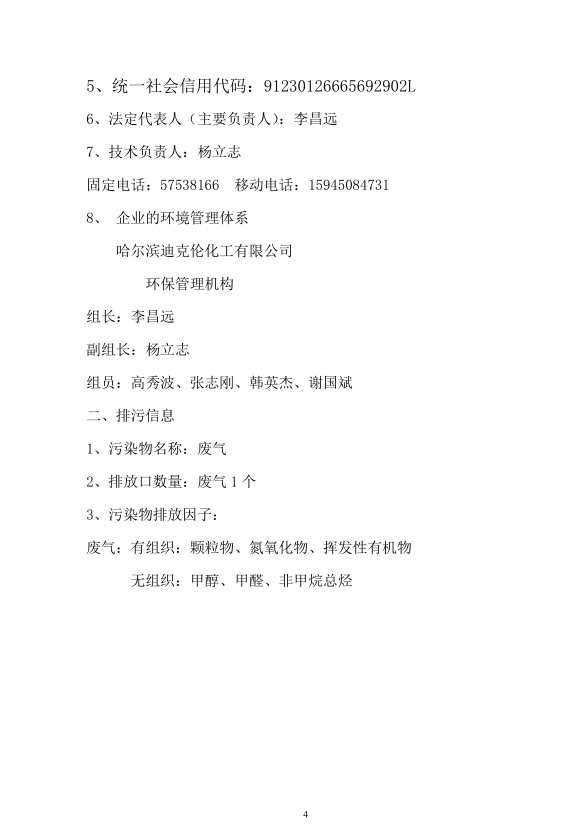 哈爾濱迪克倫化工有限公司2023年一季度環(huán)境白皮書信息公開報告